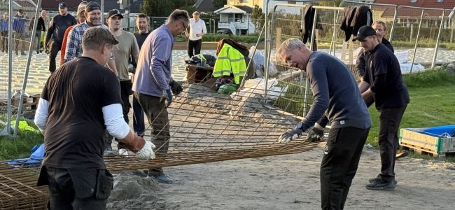 Bandy bygger 7er kunstis og kunstgressbane og dugnadsånden er det ingen ting å utsette på! I kveld stilte 30 bandyentusiaster opp for å legge ut isolasjon og armeringsjern på dugnad.