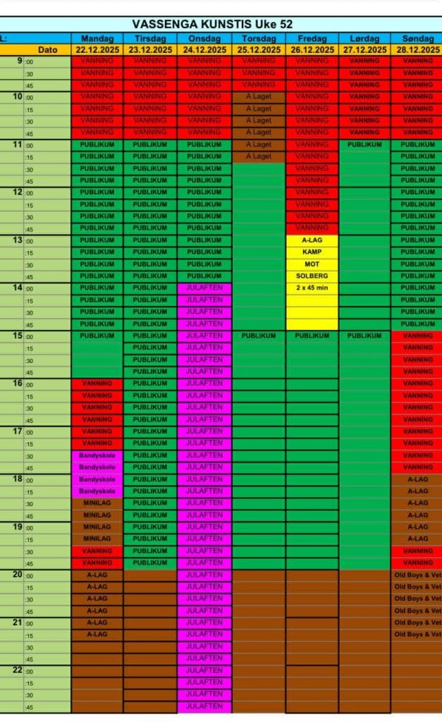 Nedenfor er baneplanen for uke 52. Oppdatert baneplan finner dere alltid her